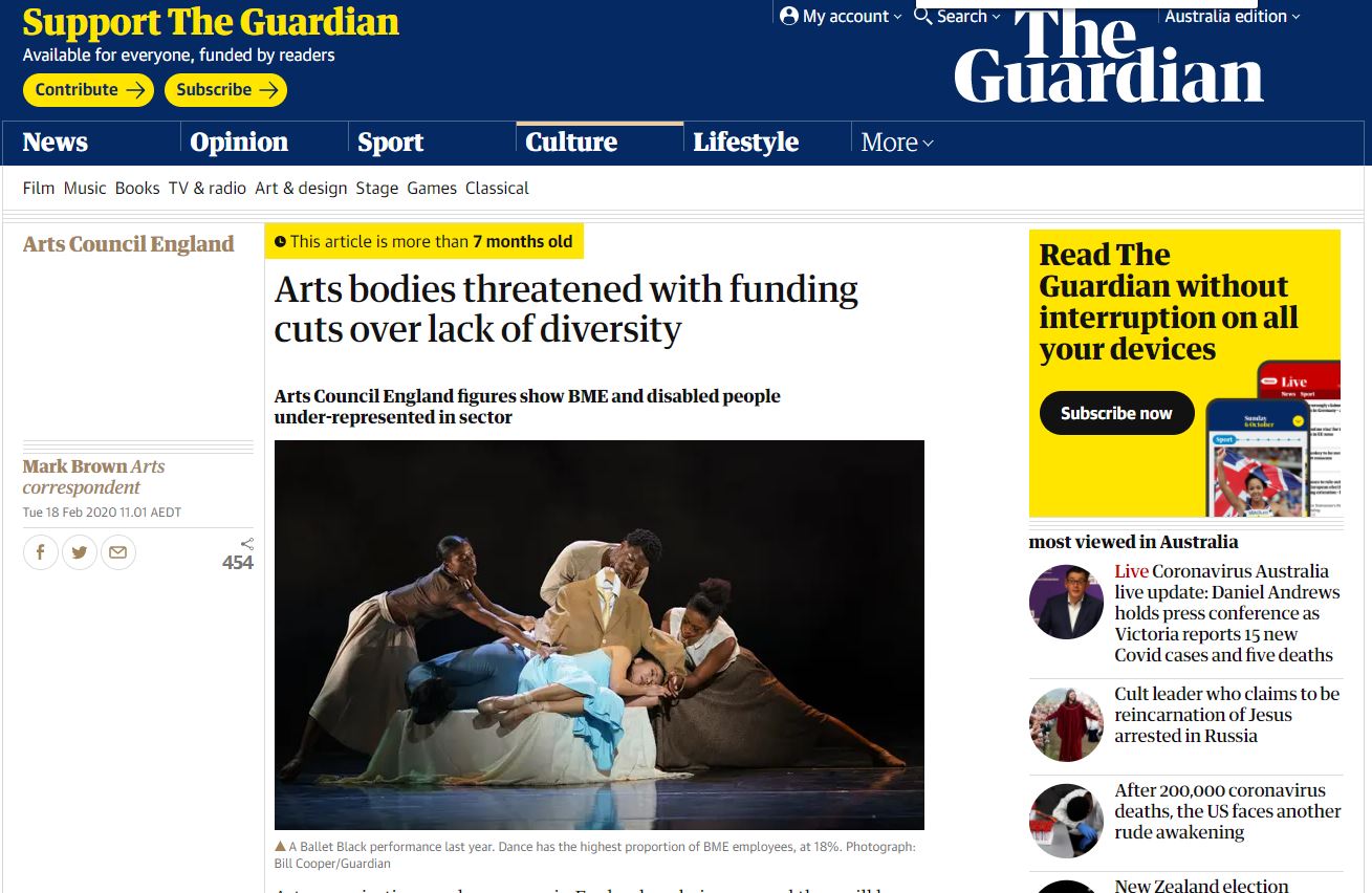 Arts Council England moves towards diversity targets tied to funding as 2020 diversity data shows little change.